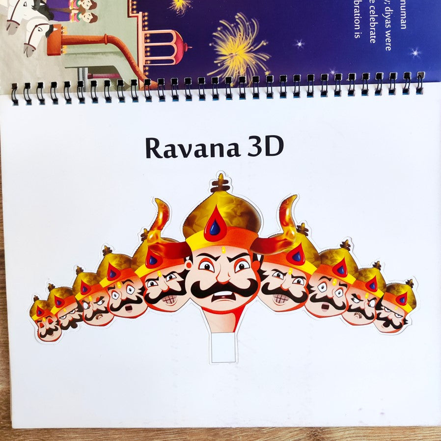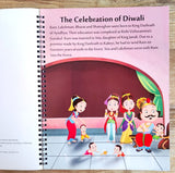 Diwali is the time of happiness, sweets, lights and decorations. This book brings to the kids some beautiful elements of diwali. Kids can decorate a rangoli, hang the lantern, play with stickers or read and learn the story behind diwali. The book has been beautifully illustrated and presented with colourful and attractive images for our young readers. It also contains a board game and a 3-D structure of Ravana to provide kids with better knowledge about the celebrations of diwali.