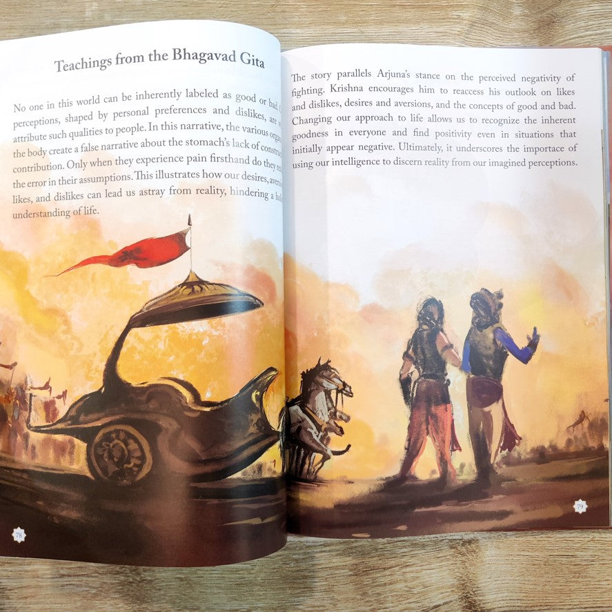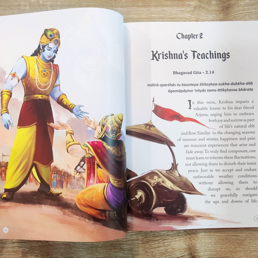 This beautifully illustrated book introduces young readers to the Bhagavad Gita's wisdom. Filled with captivating stories, the book imparts essential values, fostering strong ethics and personal growth. Through rich cultural heritage, children embrace righteousness and purpose. Thought-provoking tales engage young minds while gorgeous illustrations ignite their imagination. This book offers timeless teachings in an accessible and visually stunning format suitable for children.