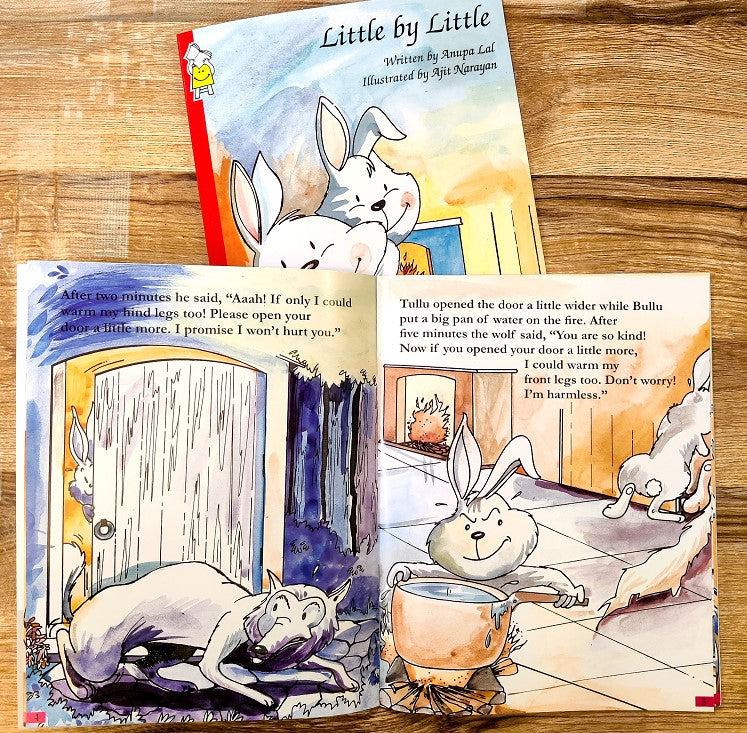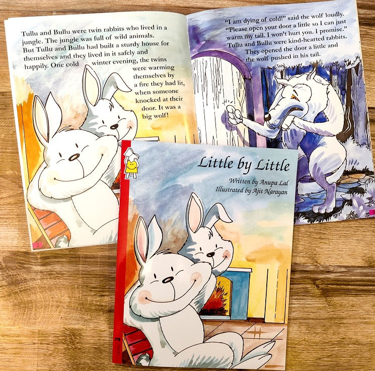 What do two brave little rabbits do when the wolf asks for shelter? Find out in this fun book… little by little.