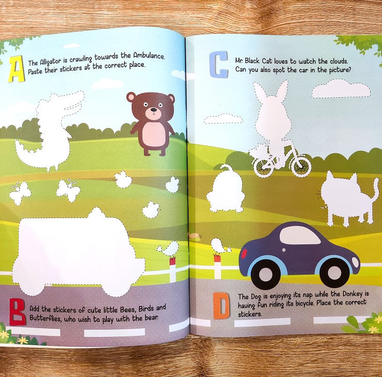 A perfect sticker book to introduce a budding artist to English alphabet. The book has cool 100 plus colourful illustrated stickers to have fun while learning basic concepts. Colourful stickers enhance your child's learning adventure and helps them develop their creativity and fine motor skills.