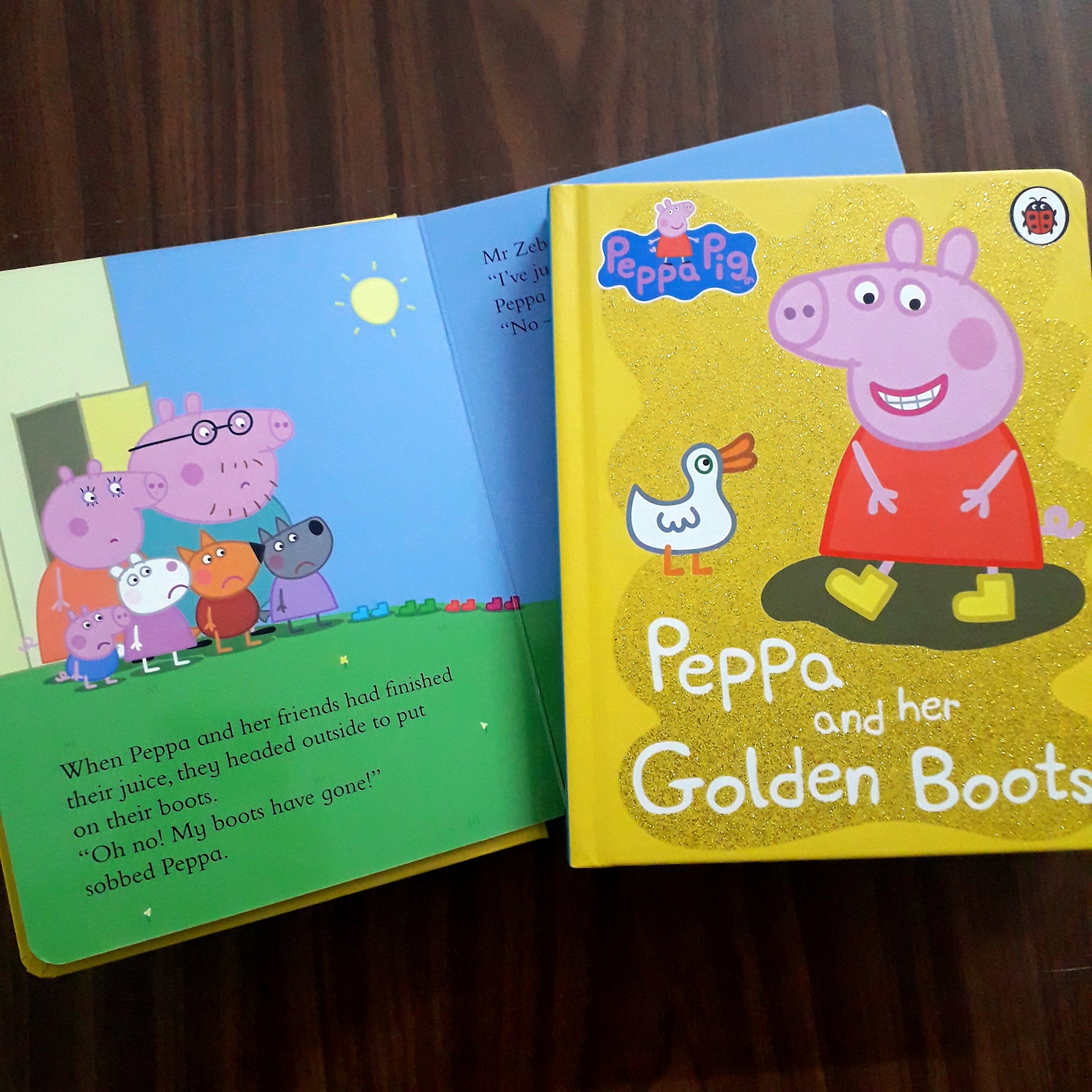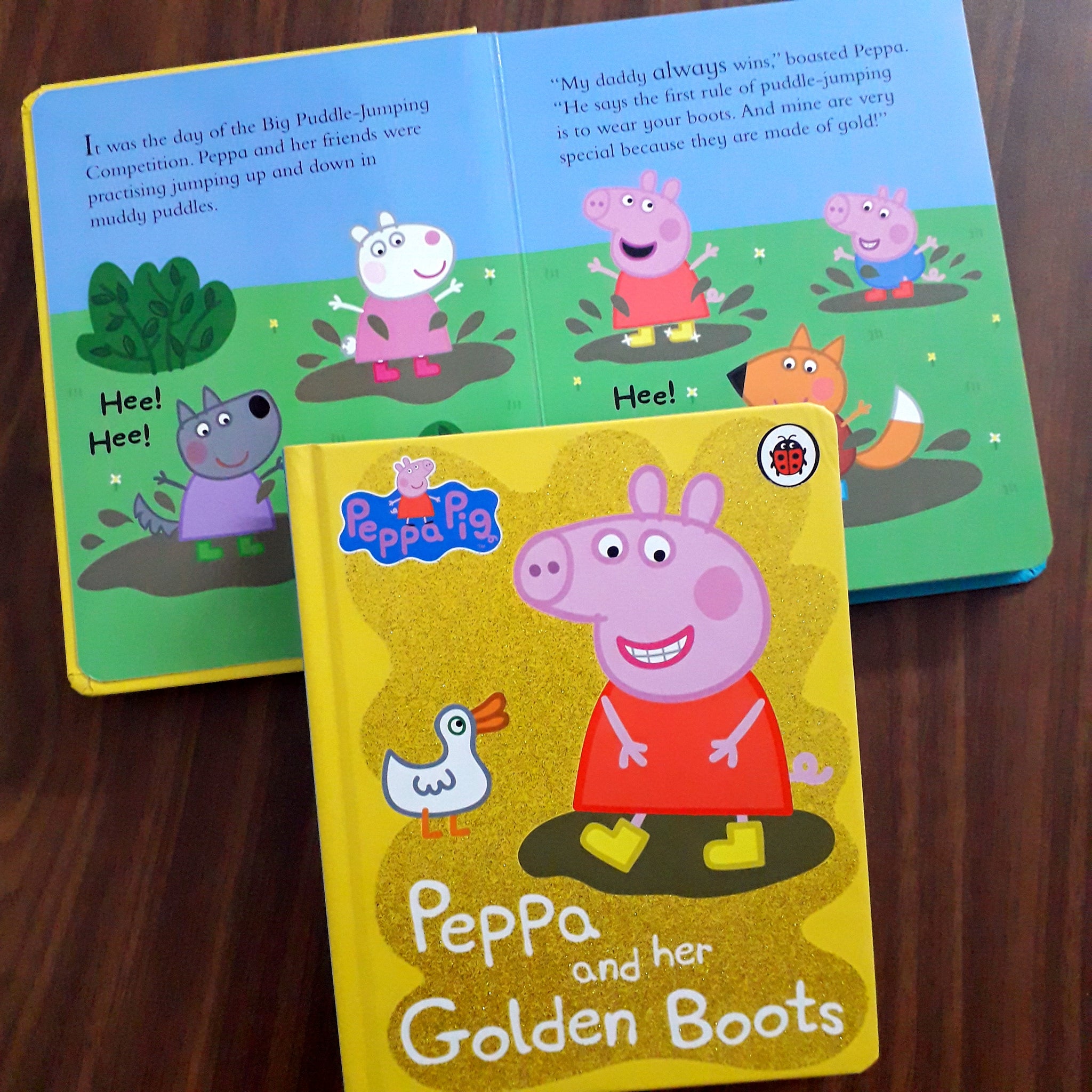 It's the day of the Big Puddle-Jumping Competition, but when Peppa's real plastic golden boots are stolen so is her chance of taking part. She needs them back - and quackly . . . When Mrs Duck steals Peppa's special golden wellies, Peppa and her friends head on a magical adventure to get them back! Poor Peppa can't participate in the puddle jumping competition without her golden wellies! With the help of her friends and Mummy and Daddy Pig, they head off on a extraordinary adventure to find them. Will she get her boots back in time to take part in the puddle jumping competition? This delightful picture book is based on the Peppa Pig film, The Golden Boots.