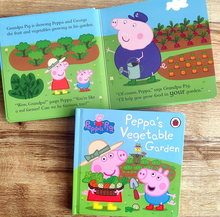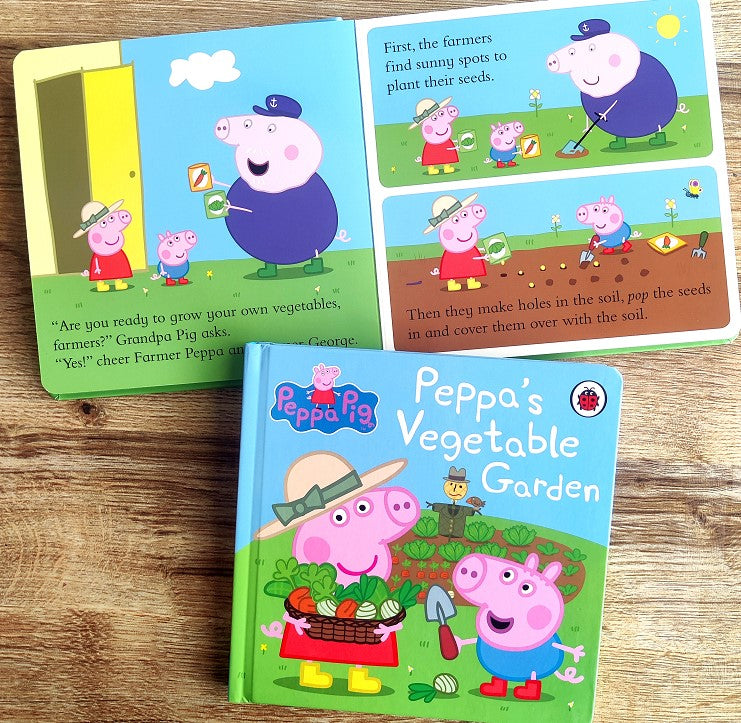 Grandpa Pig loves growing vegetables in his garden, so Peppa and George want to be farmers too! They have lots of fun choosing what to grow, planting their seeds and learning to be patient waiting for them to grow. Then it's time for a delicious vegetable feast!
