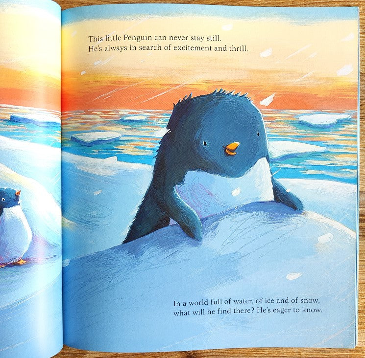 In the frozen Antarctic, one curious little penguin decides to explore the ice and the snow and the sea. On his travels he sees two blue whales, a family of sea lions and a whole school of orca, but soon Penguin starts to miss his own family. Sometimes coming home is the best adventure of all.