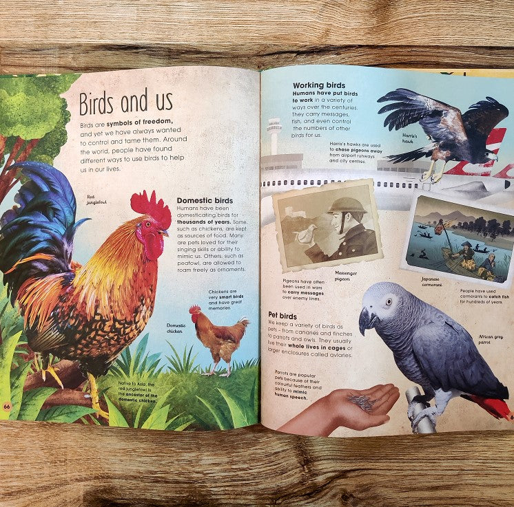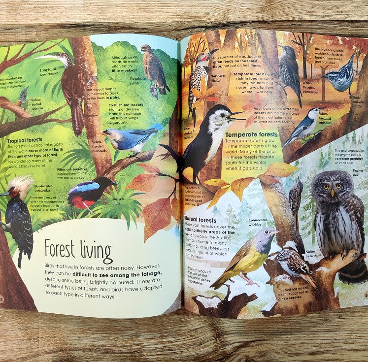 -Detailed illustrations and photographs of all things bird - beaks, feathers, nests, eggs, habitats and more!