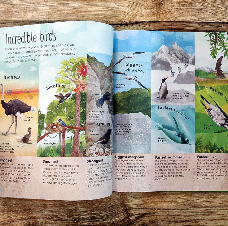 Parrots, hummingbirds, eagles and more, swoop across the pages of this colorful bird book, featuring illustrations and photographs to immerse young nature enthusiasts in the extraordinary world of birds.