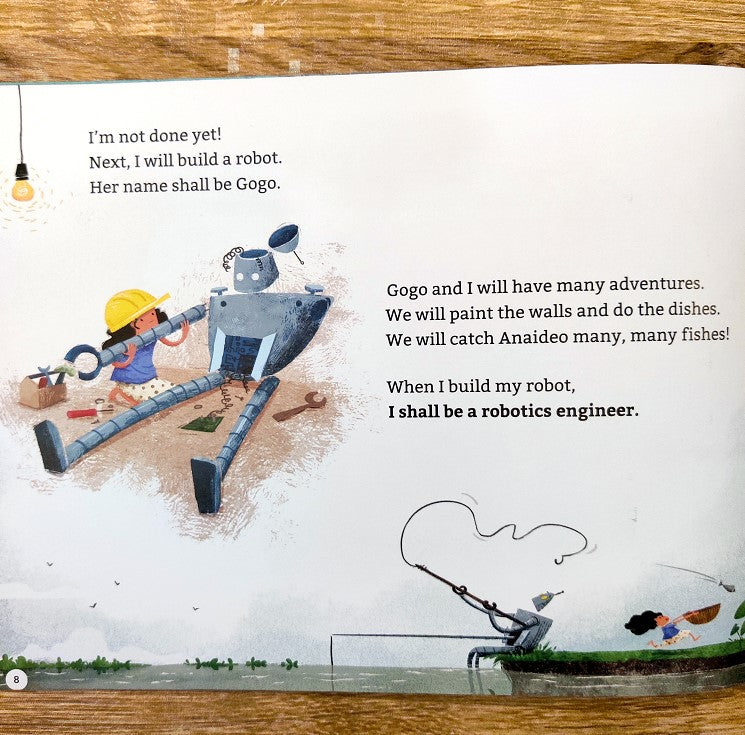 I am Papori and I will be an engineer when I grow up. This book is about all the things I will build. It is full of big words, but it is full of big adventures too. Come join me.