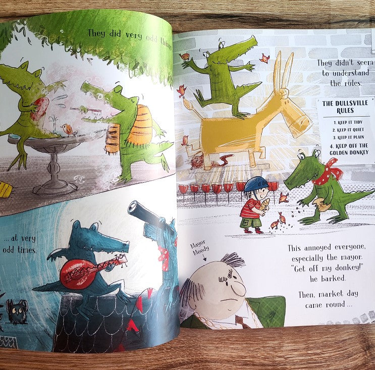 But one little boy knows differently, and when two naughty thieves arrive in Dullsville one night, the whole town sees how much Dullsville needs its two brave and loyal crocs...